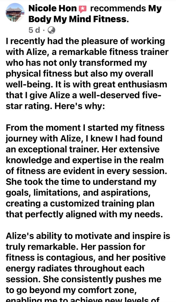Each review on my webpage is a testament to the life-changing power of fitness. It’s not just about the numbers on a scale or the size of our clothes; it’s about reclaiming our confidence, celebrating our bodies, and embracing a healthier, more fulfilling lifestyle.